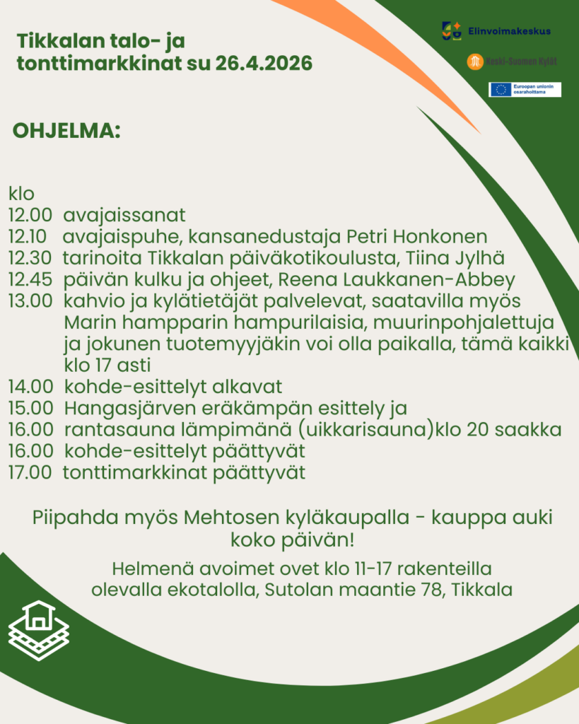 Korpilahden pohjoisten kylien talo-ja tonttimarkkinat su 26.4.26